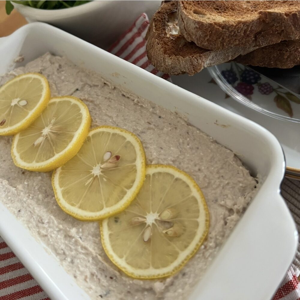 I make this delightful pate with Greek yoghurt but if you prefer, a quality mayonnaise would also work well. Can be served in individual pots or as a whole, as I have done for the recipe picture.