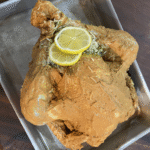 A deliciously moist Indian spiced turkey, marinated in a Tandoori and Masala yoghurt, with additional aromatic flavours and spice, offering a unique change from the traditional turkey enjoyed at this unique celebratory time of the year. For this turkey I use a meat thermometer to control cooking – check instructions on the packet of the machine.